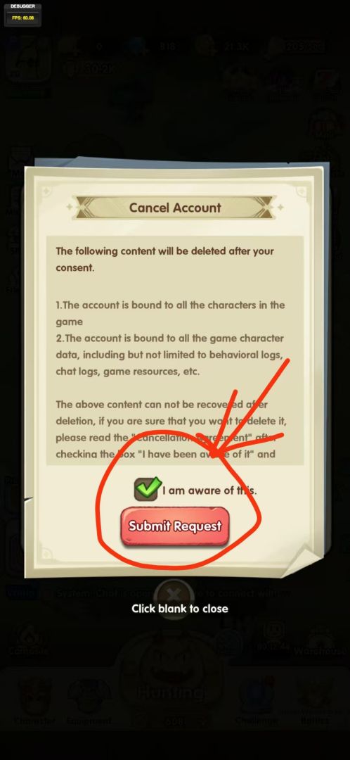 Third Step: Select "I am aware of this", then press "Submit Request".